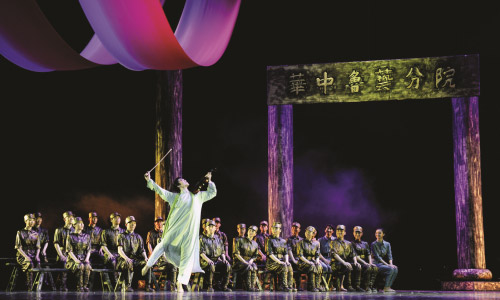 本次演出進(jìn)行了大幅度的改動,更加突出了鹽阜人民和新四軍魚水相依的濃濃深情;同時在整體風(fēng)格上融入了鹽阜水鄉(xiāng)的地域特色,此外,在舞臺氣氛上,還營造了桃花紛飛的絢麗場景,整部劇更接地氣,更具時代特色。