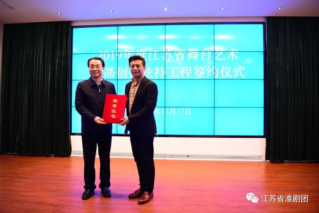 2019年12月17日上午,在省文化和旅游廳龍?bào)蠢镛k公區(qū)大會(huì)議室,舉行省舞臺(tái)藝術(shù)精品創(chuàng)作扶持工程簽約儀式。由江蘇省淮劇團(tuán)創(chuàng)排演出的淮劇《小城》,同時(shí)入選省舞臺(tái)藝術(shù)精品創(chuàng)作扶持工程重點(diǎn)投入劇目作品和省舞臺(tái)藝術(shù)精品創(chuàng)作扶持工程扶持劇目。